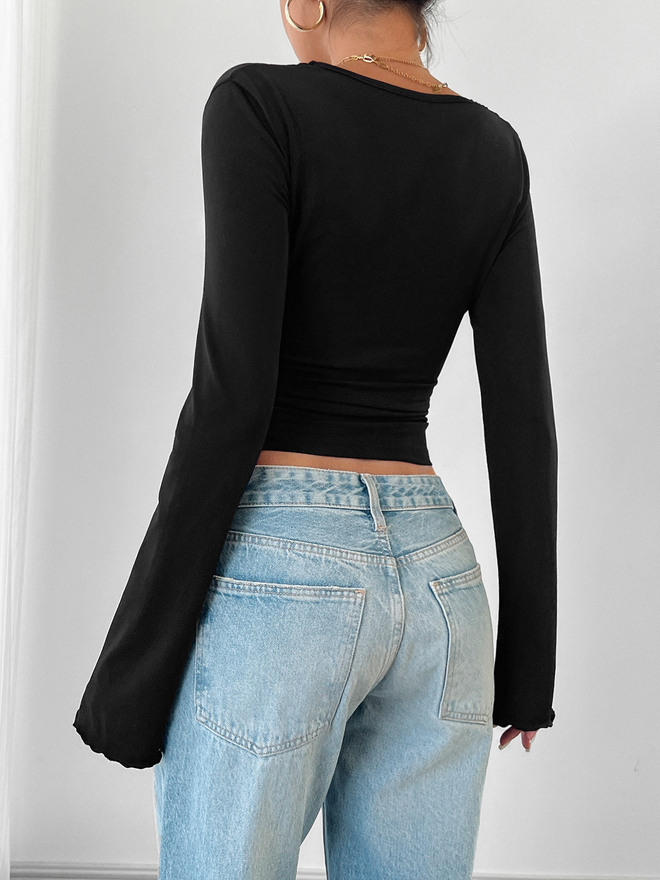 V neck Stitching Lace Sexy Long Sleeve Slim Fit Top